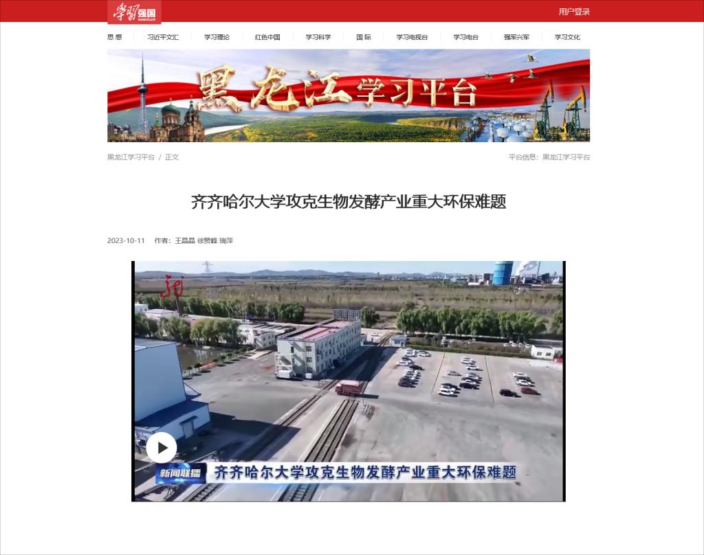 【学习强国】齐齐哈尔大学攻克生物发酵产业重大环保难题