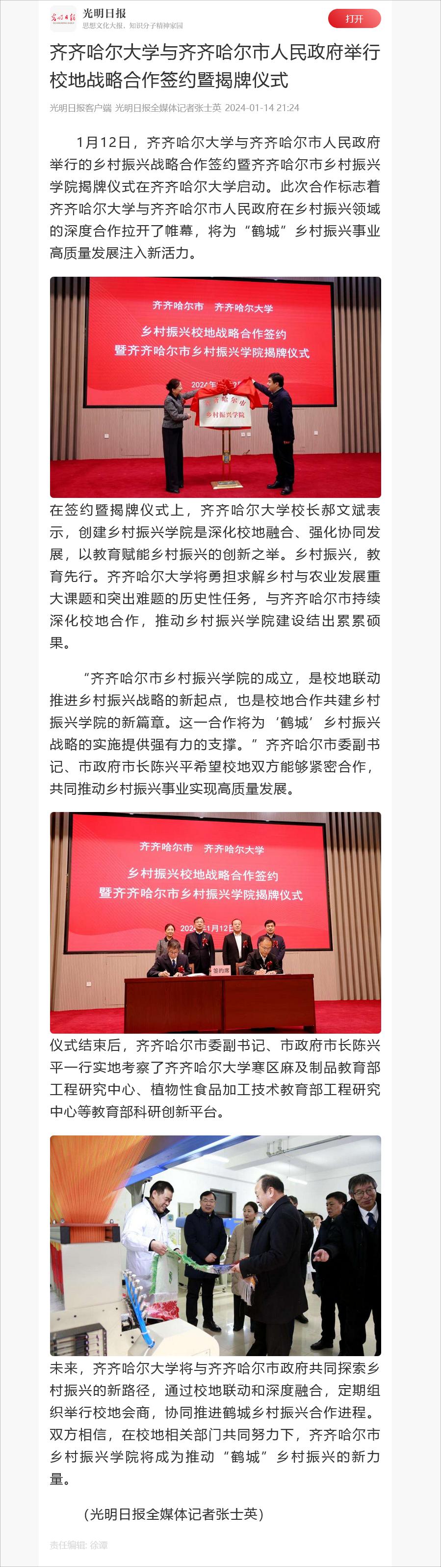 下一条:【人民日报】深化校地合作!齐齐哈尔市乡村振兴学院揭牌