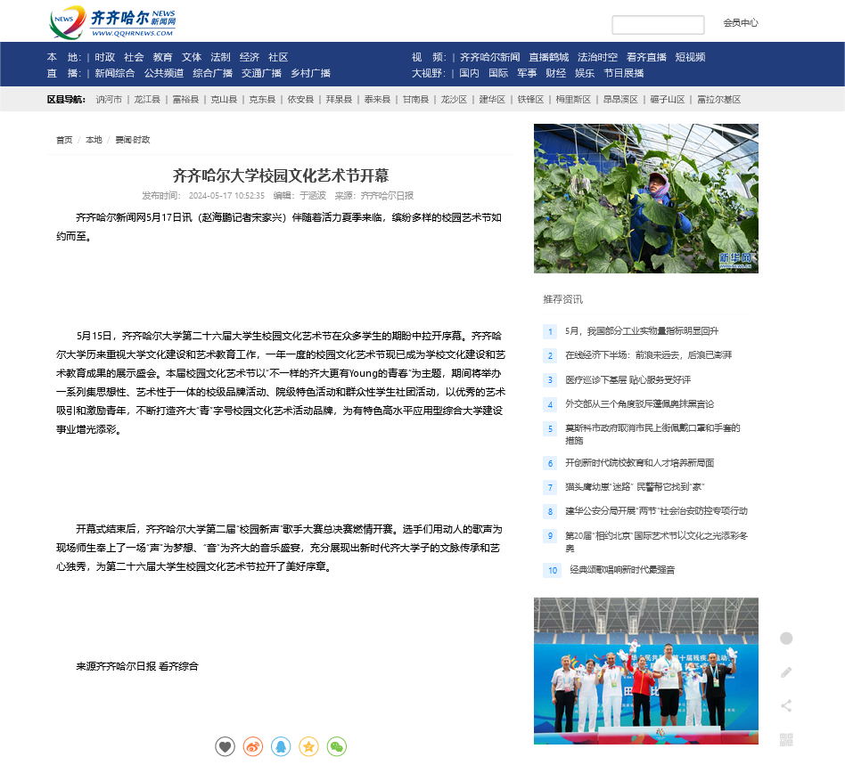 【齐齐哈尔日报】齐齐哈尔大学校园文化艺术节开幕