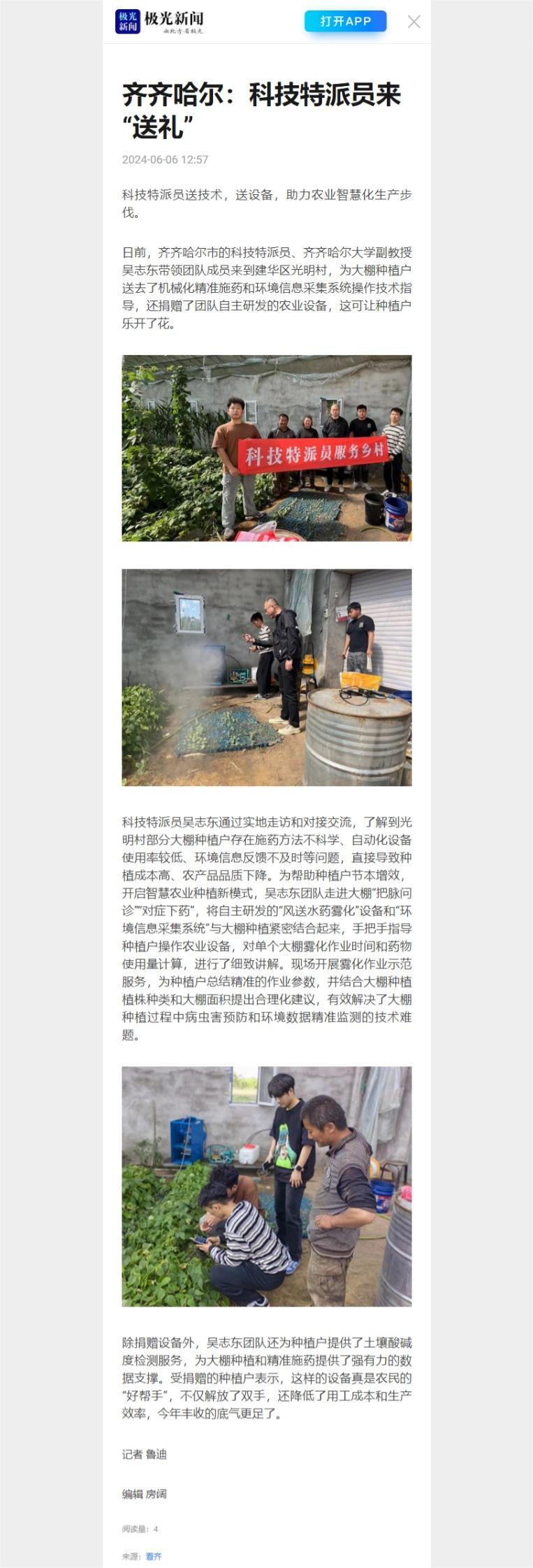 【极光新闻】齐齐哈尔:科技特派员来“送礼”