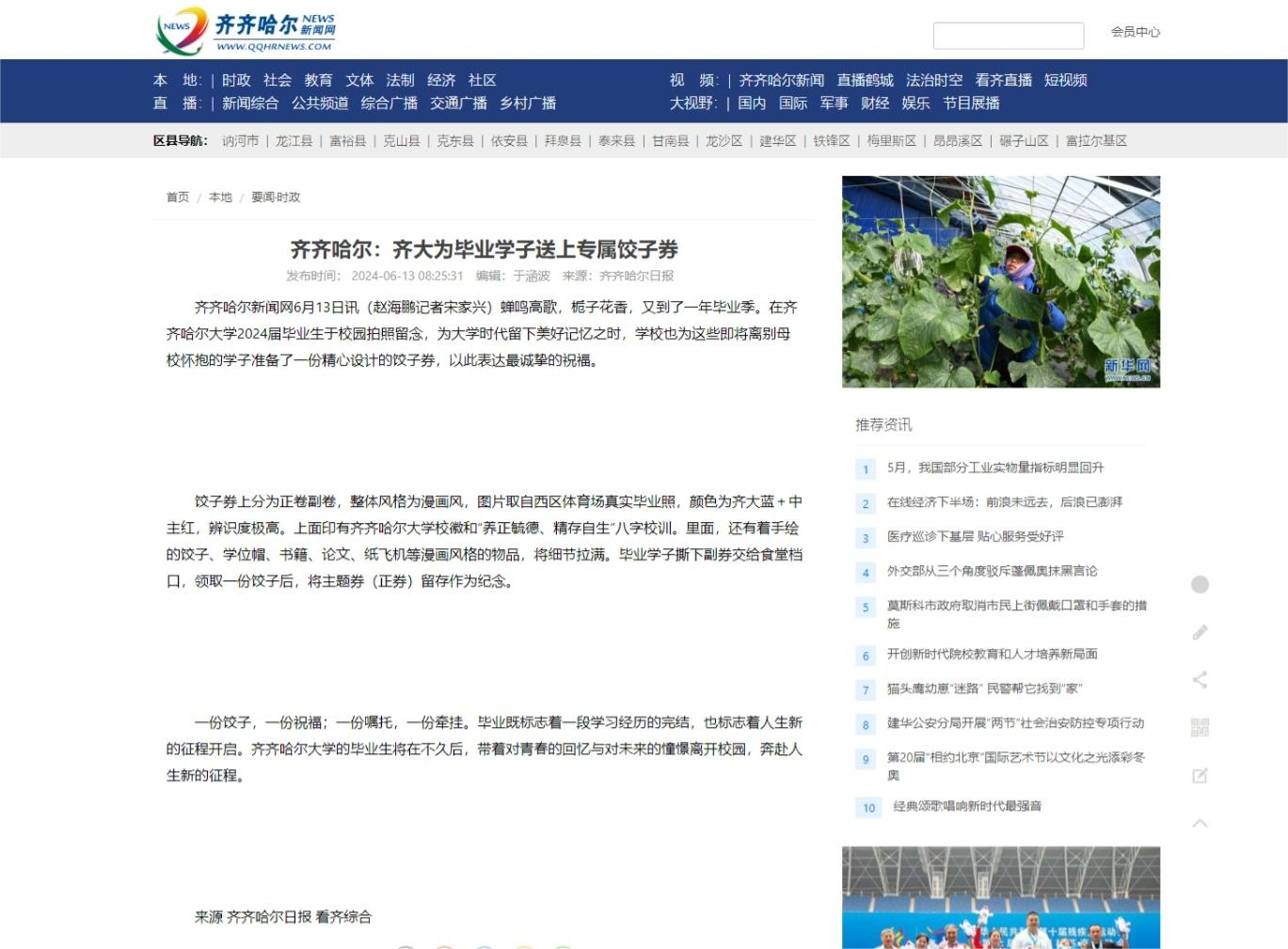 【齐齐哈尔新闻网】齐齐哈尔:齐大为毕业学子送上专属饺子券