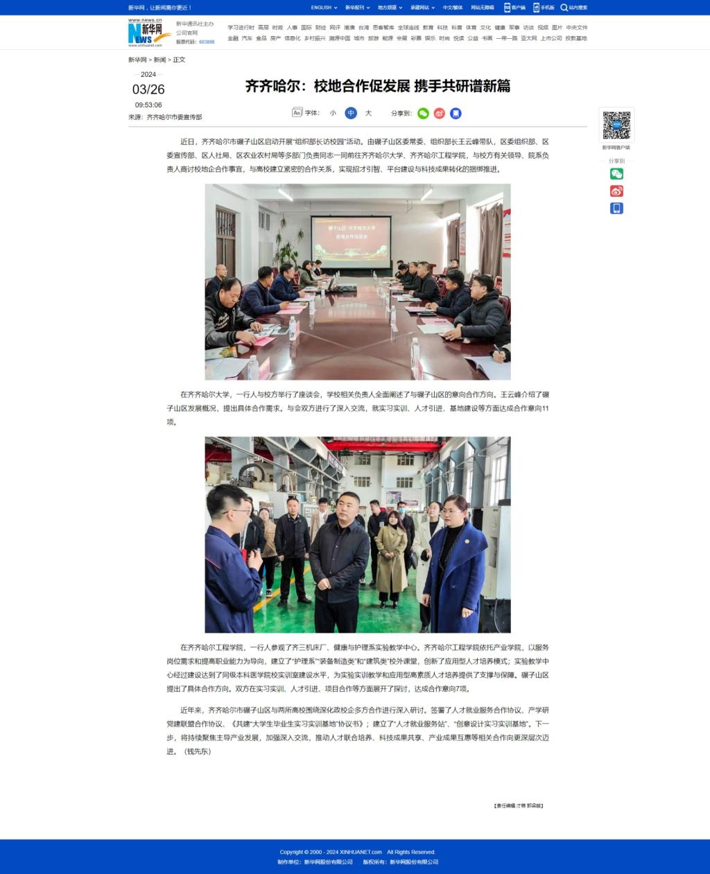【新华网】齐齐哈尔:校地合作促发展 携手共研谱新篇