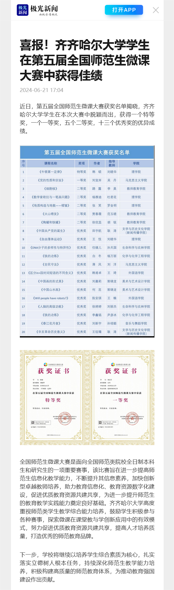 下一条:【极光新闻】喜报!祝贺“齐齐哈尔大学”官方视频号入榜本科院校视频号影响力50强