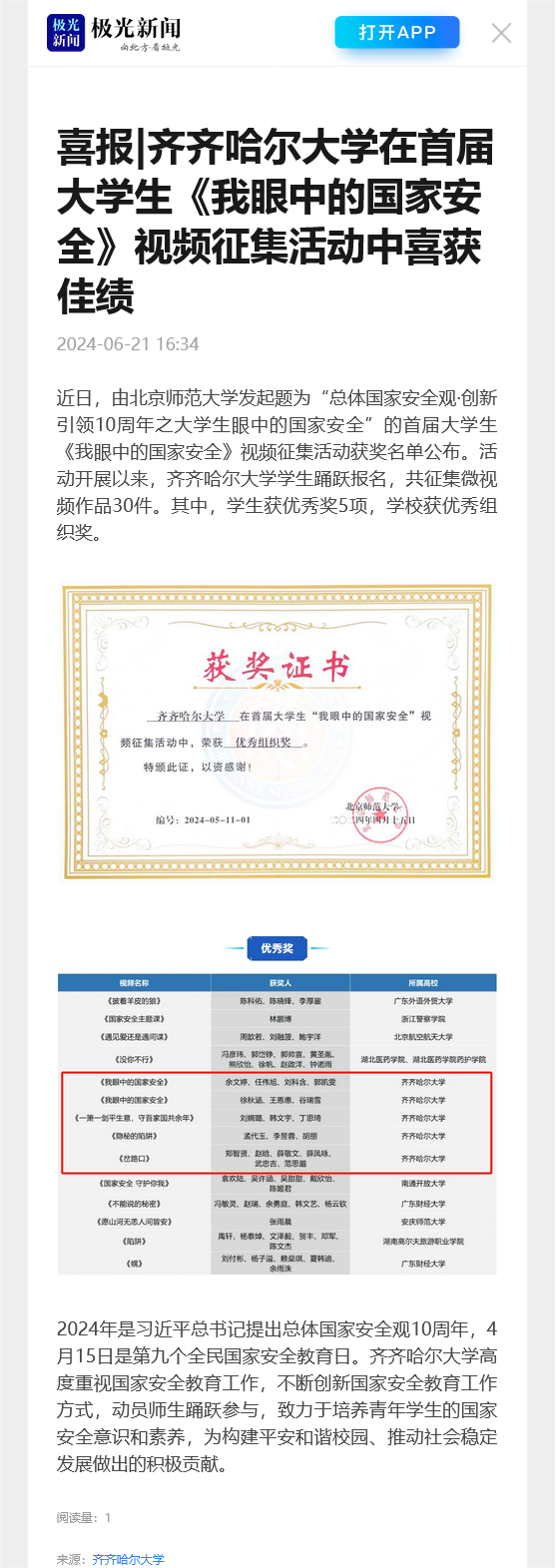 下一条:【极光新闻】喜报!齐齐哈尔大学在第17届全国大学生结构设计竞赛黑龙江省分赛区取得优异成绩