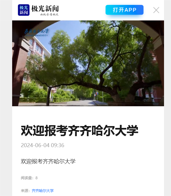 【极光新闻】欢迎报考齐齐哈尔大学