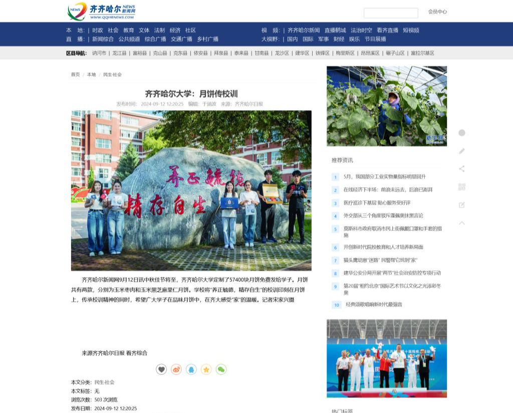 上一条:【齐齐哈尔日报】中秋节,齐齐哈尔大学定制57400块月饼免费发给学子