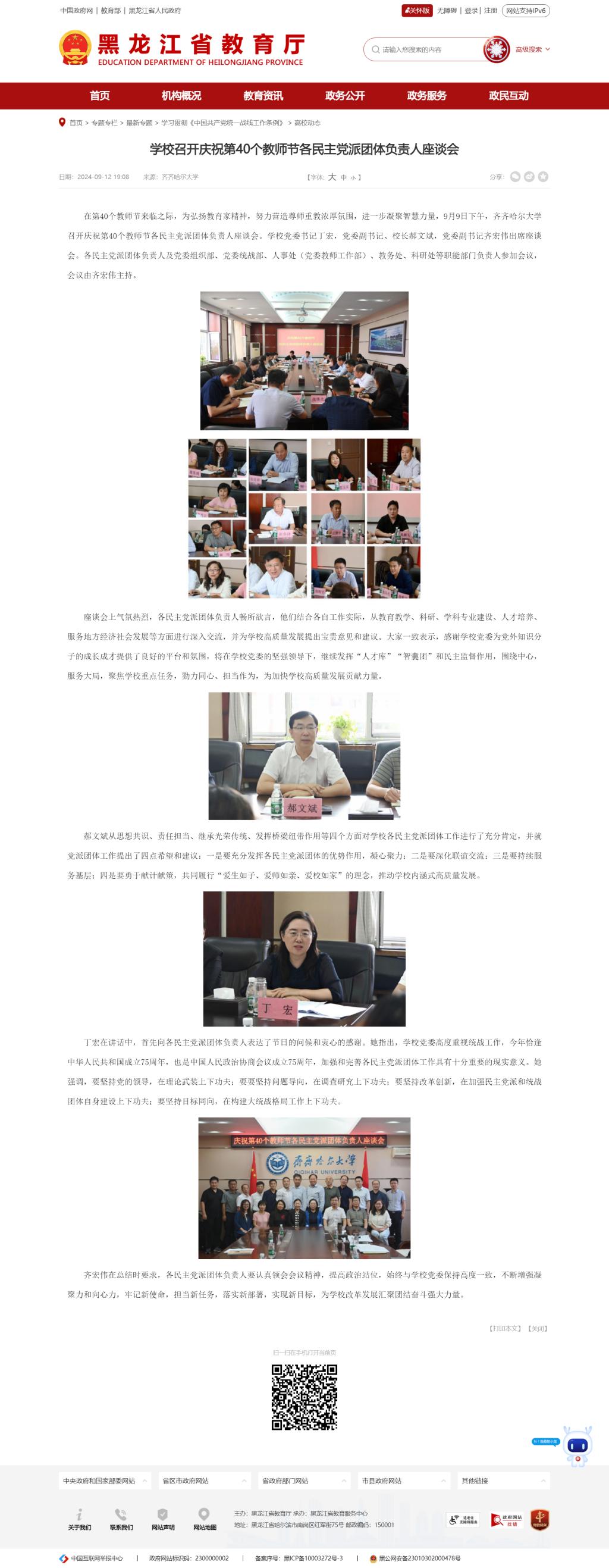 【黑龙江省教育厅】学校召开庆祝第40个教师节各民主党派团体负责人座谈会