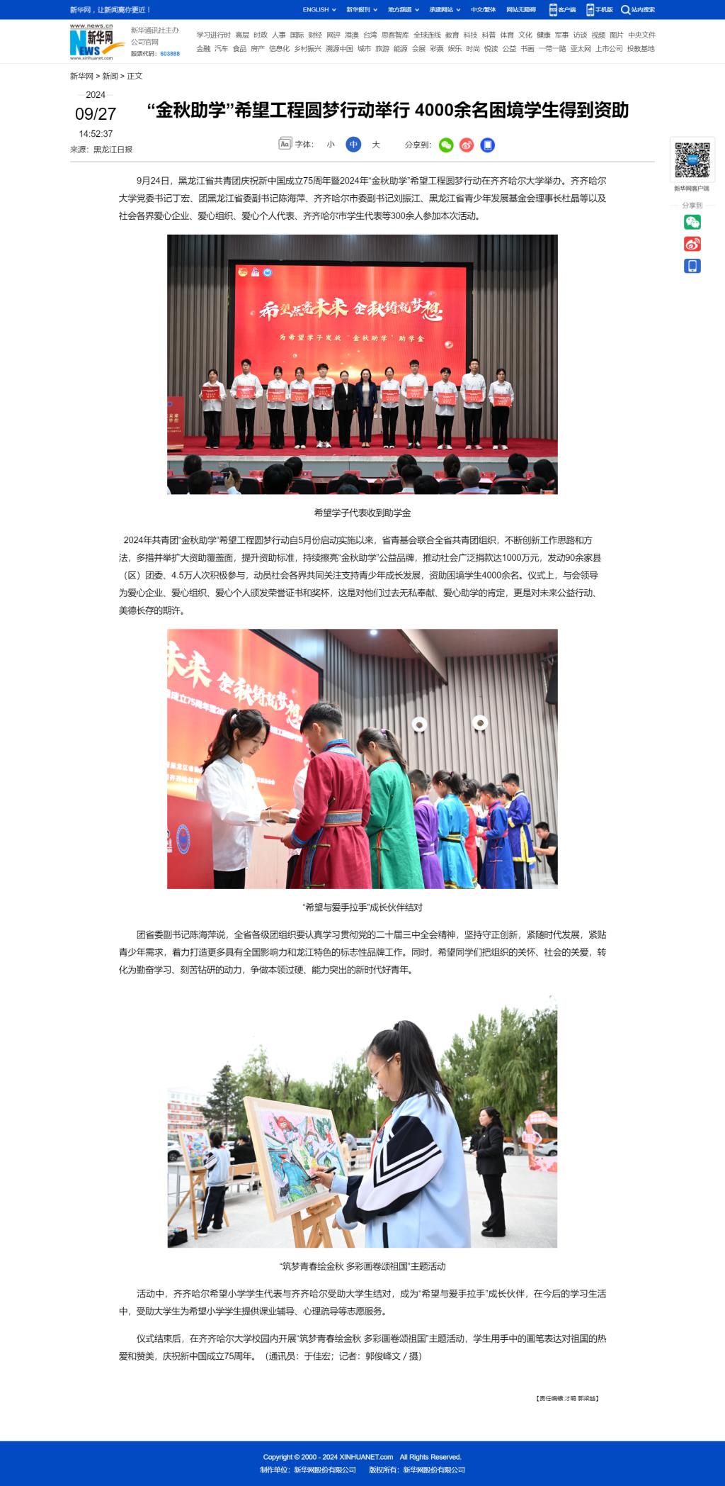 上一条:【齐齐哈尔日报】团省委“金秋助学”助学金发放仪式在齐大举行