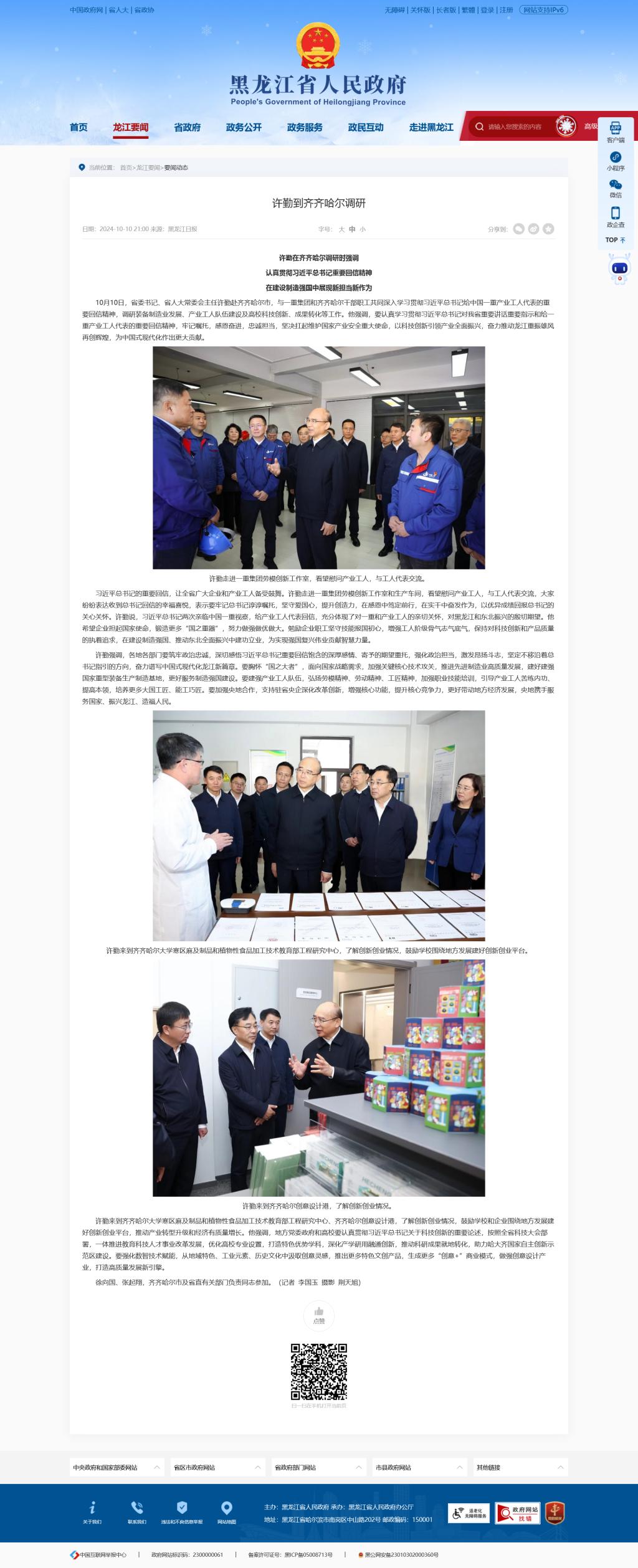 【黑龙江省人民政府】许勤到齐齐哈尔调研