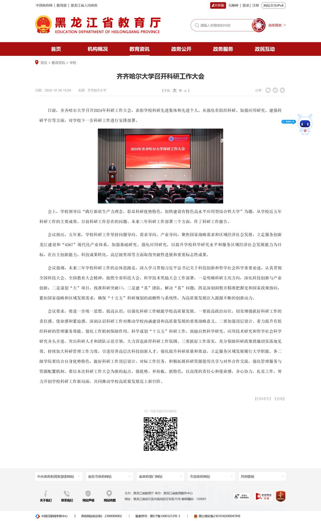 【黑龙江省教育厅】齐齐哈尔大学召开科研工作大会