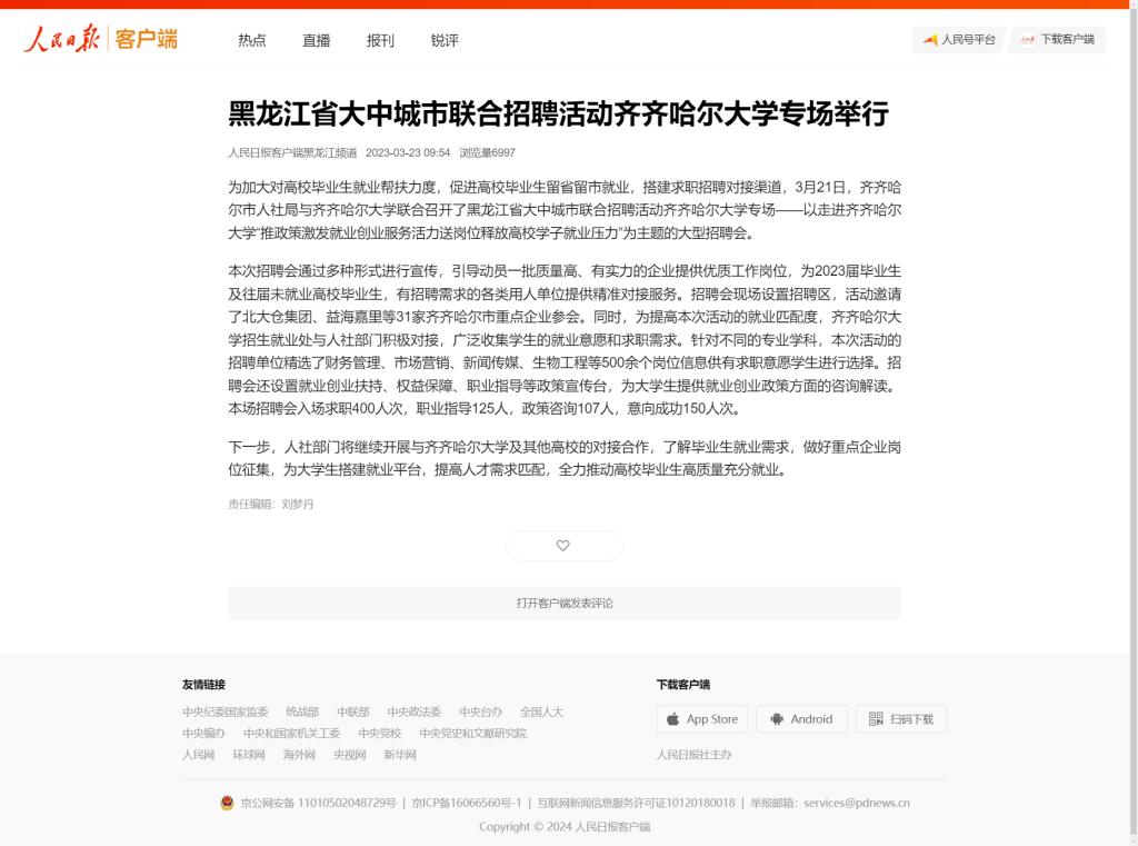 【人民日报】黑龙江省大中城市联合招聘活动齐齐哈尔大学专场举行