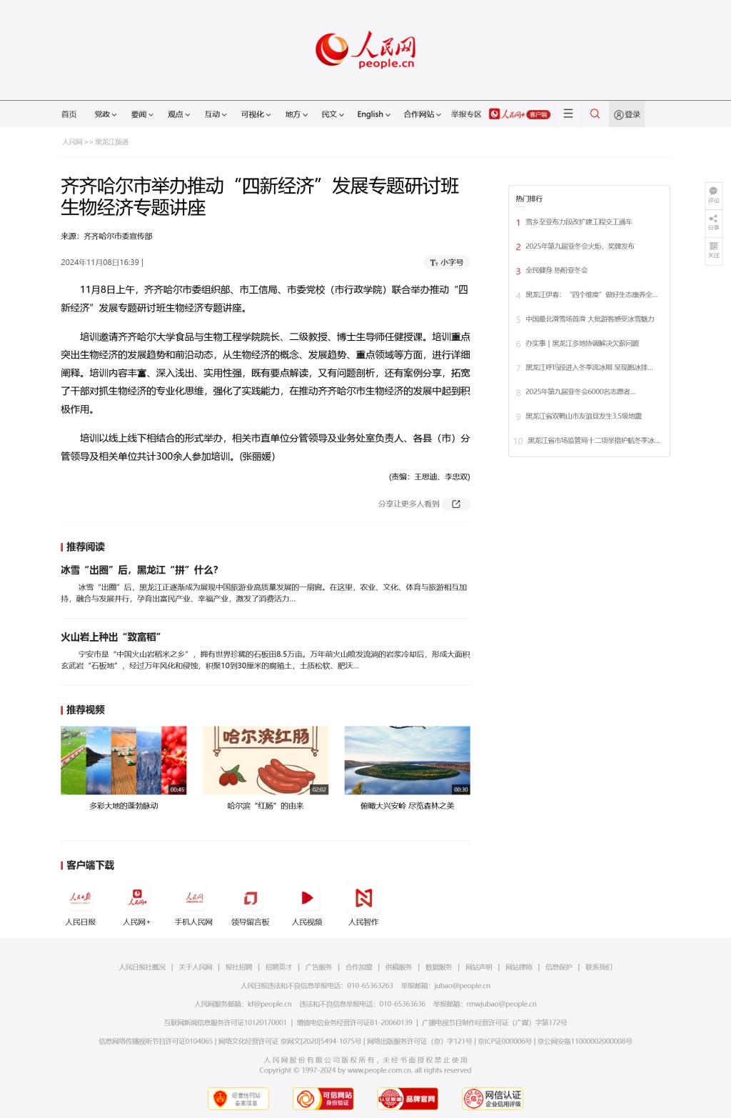 【人民网】齐齐哈尔市举办推动“四新经济”发展专题研讨班生物经济专题讲座