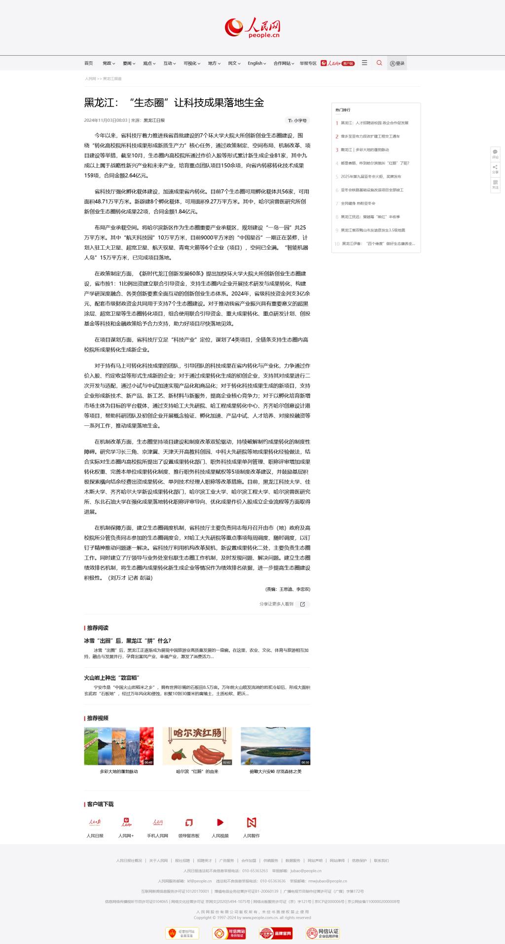 【人民网】黑龙江:“生态圈”让科技成果落地生金