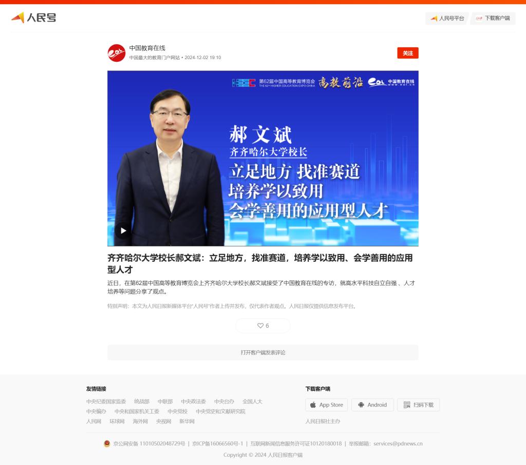 上一条:【学习强国】齐齐哈尔大学校长郝文斌:立足地方,找准赛道,培养学以致用、会学善用的应用型人才