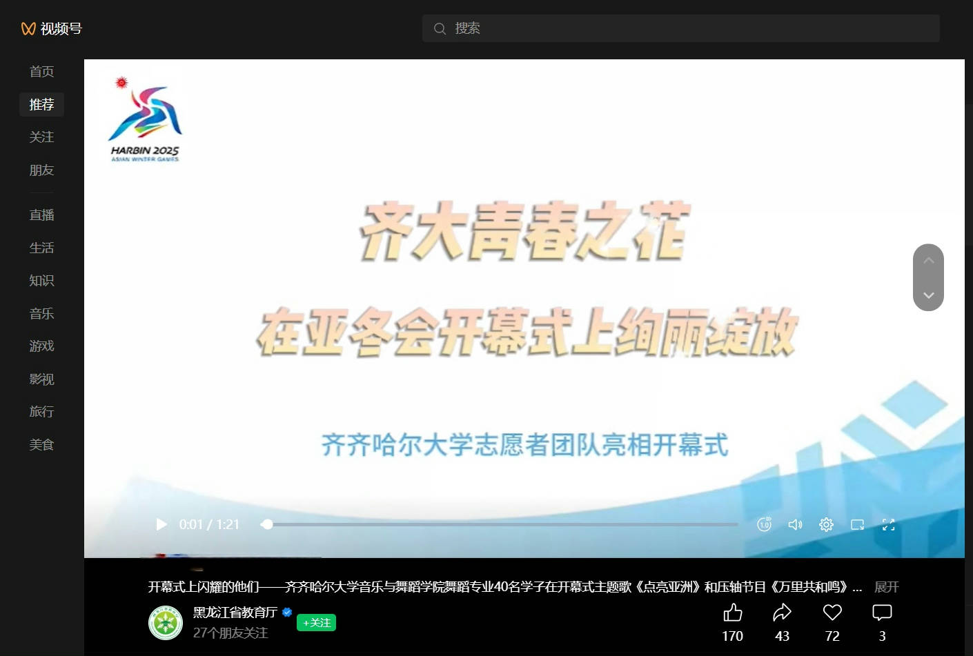 下一条:【黑龙江省教育厅】开幕式上闪耀的他们——齐齐哈尔大学志愿者担任引导员,冰雪同梦,亚洲同心,志愿同行。