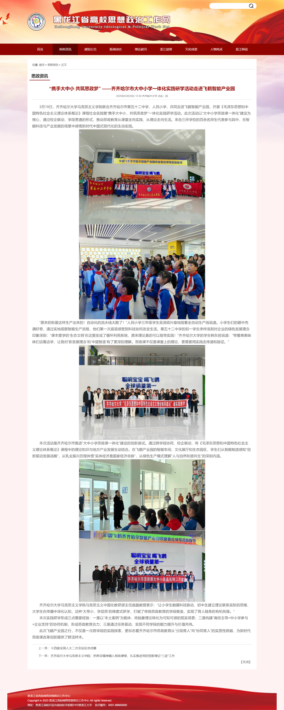 下一条:【黑龙江省高校思想政治工作网】齐齐哈尔大学马克思主义学院:把两会精神融入思政课堂,扎实推进党的创新理论“三进”工作