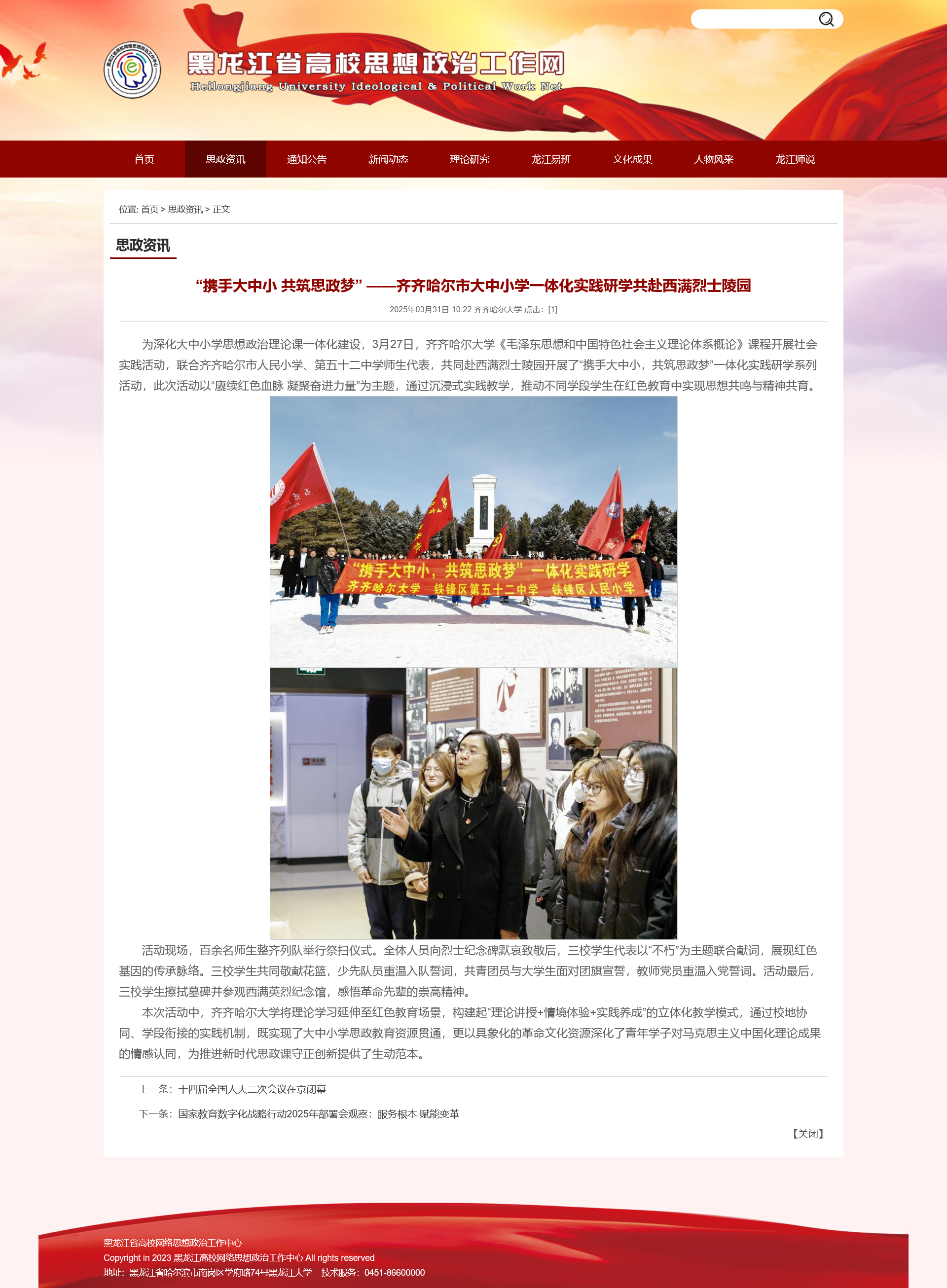 【黑龙江省高校思想政治工作网】“携手大中小 共筑思政梦” ——齐齐哈尔市大中小学一体化实践研学共赴西满烈士陵园