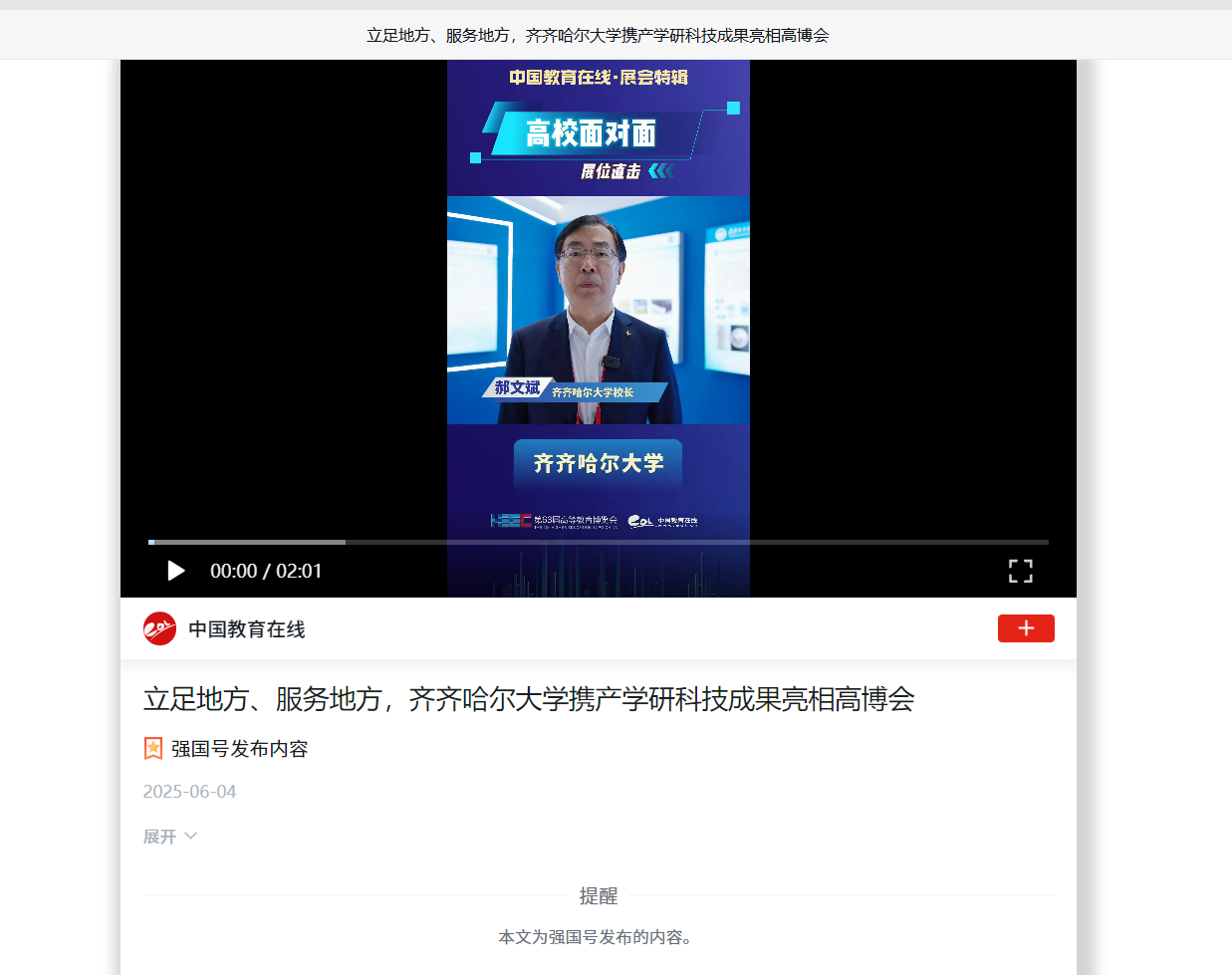 【强国号】立足地方、服务地方,齐齐哈尔大学携产学研科技成果亮相高博会