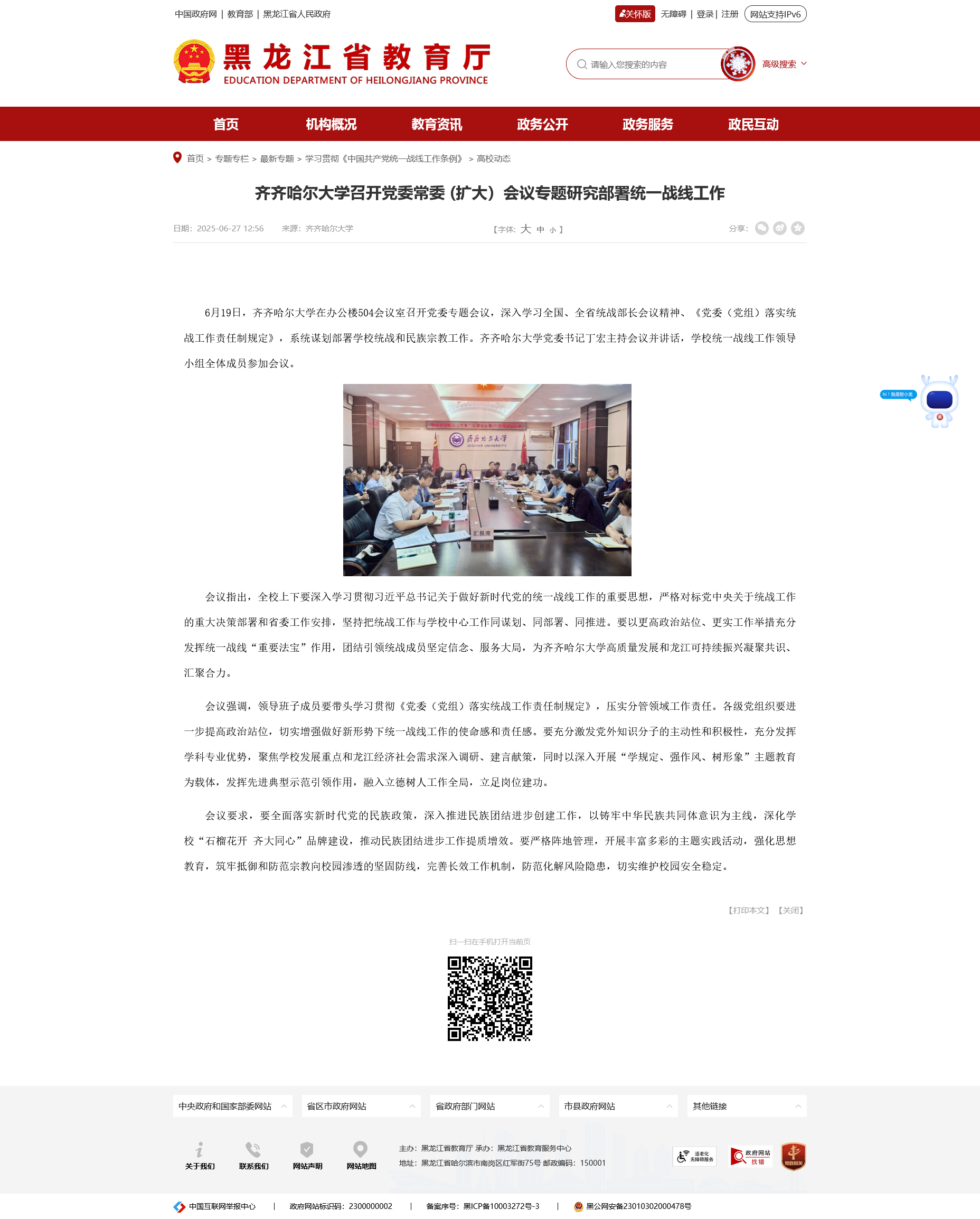 下一条:【黑龙江省教育厅】齐齐哈尔大学各民主党派、团体开展“学规定、强作风、树形象”主题教育实践活动