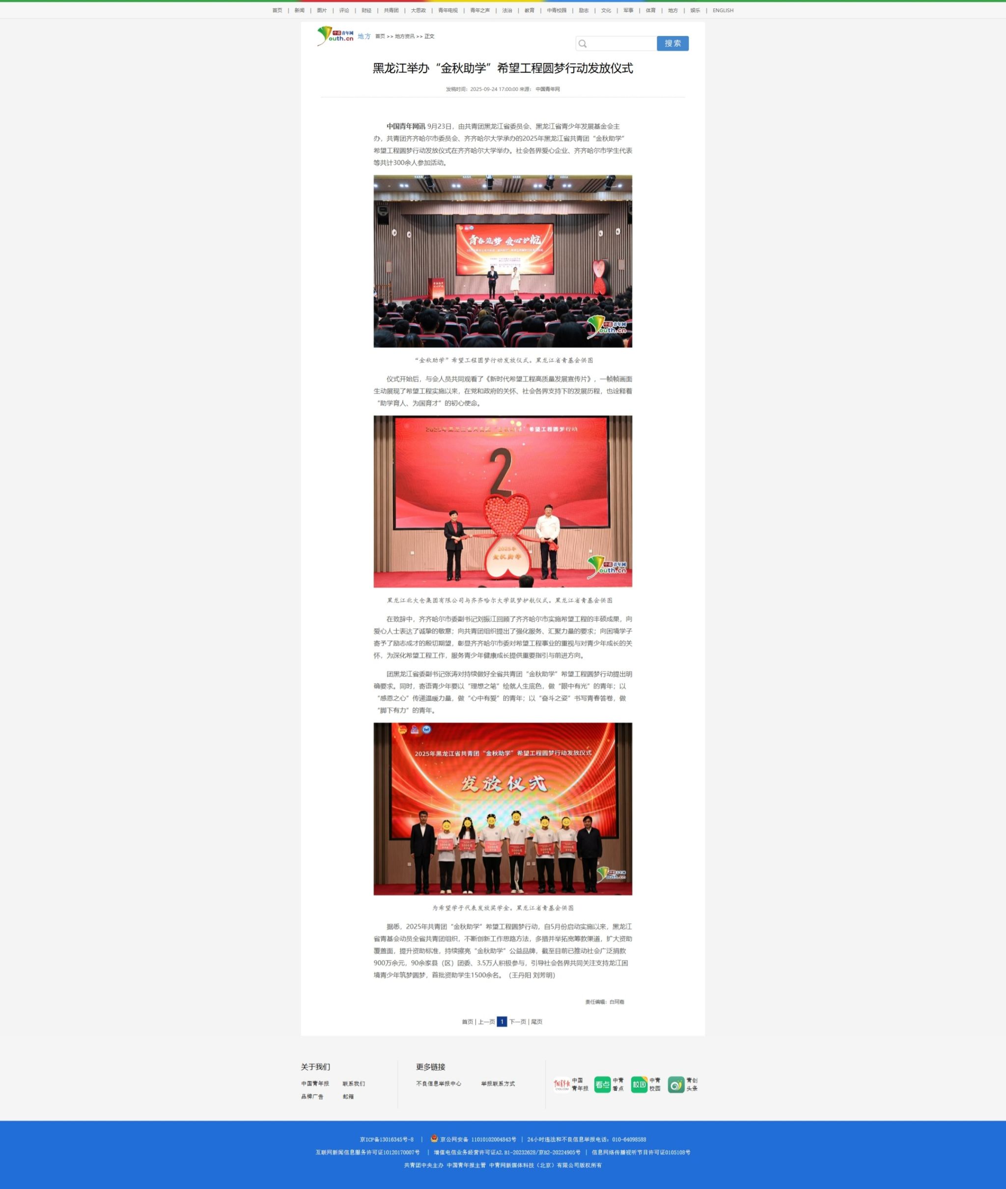 下一条:【黑龙江日报】“金秋助学”希望工程圆梦行动举行助学金发放仪式