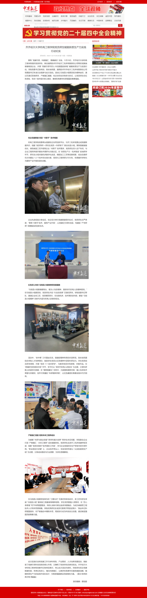 【中国报道】齐齐哈尔大学机电工程学院党员师生赋能新质生产力实践行动纪实