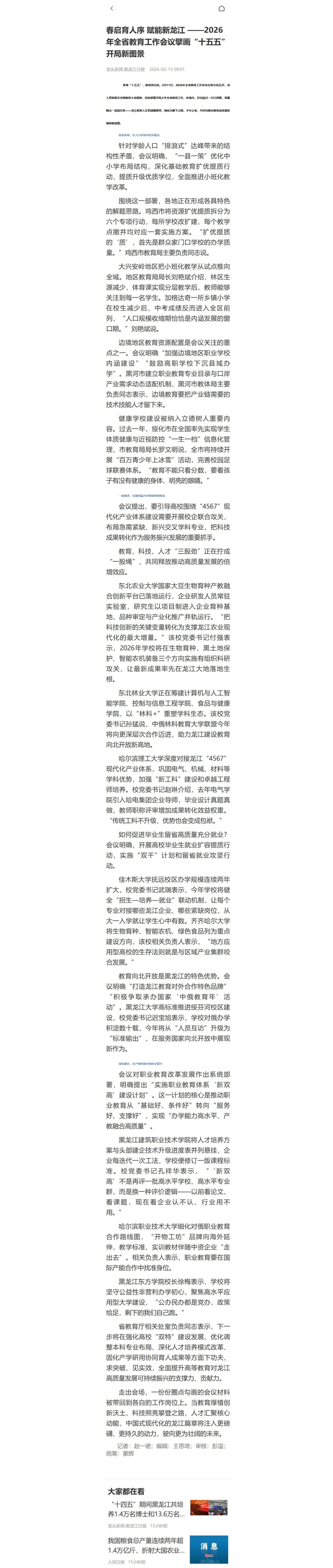 【龙头新闻·黑龙江日报】春启育人序 赋能新龙江 ——2026年全省教育工作会议擘画“十五五”开局新图景