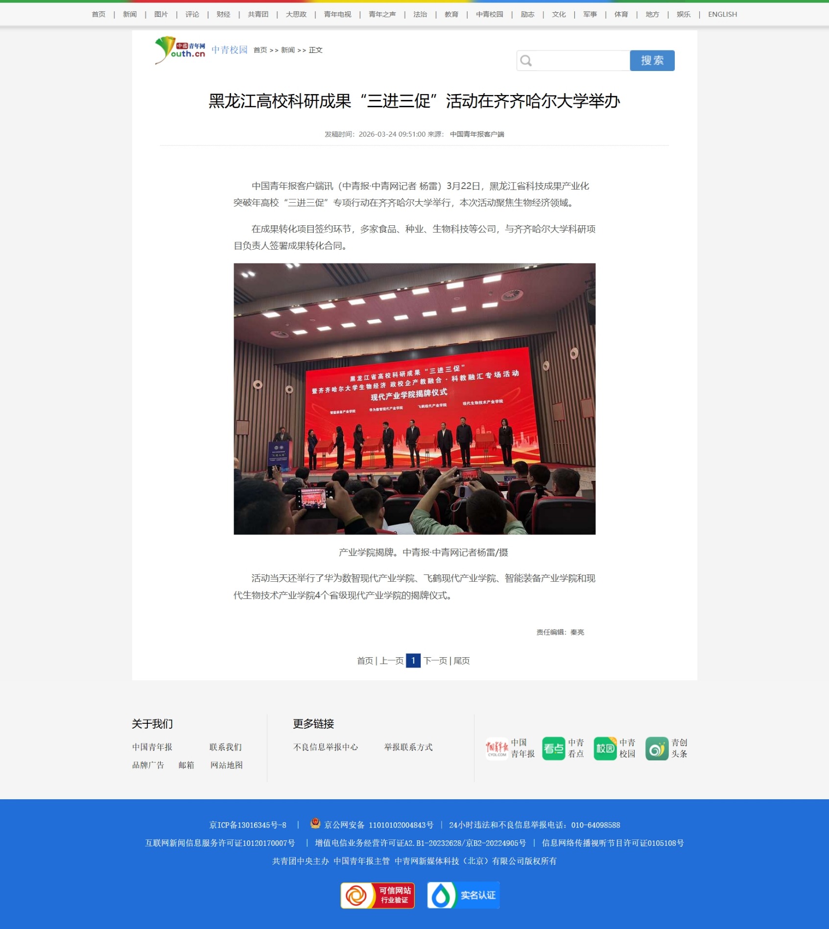 上一条:【龙江要闻】省高校科研成果“三进三促”暨齐齐哈尔大学生物经济政校企产教融合·科教融汇专场举行