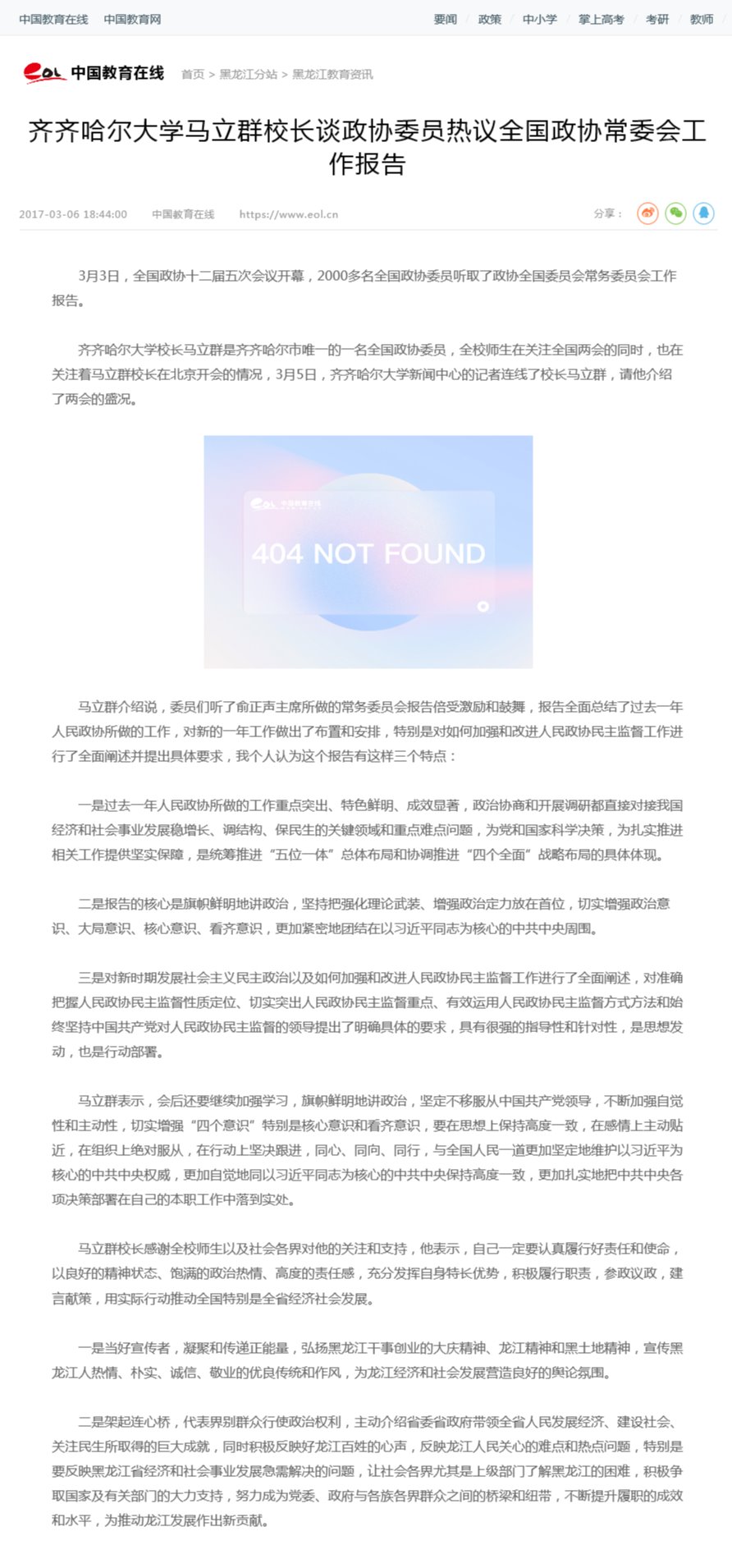 下一条:【中国教育在线】齐齐哈尔大学马立群校长谈政协委员热议全国政协常委会工作报告