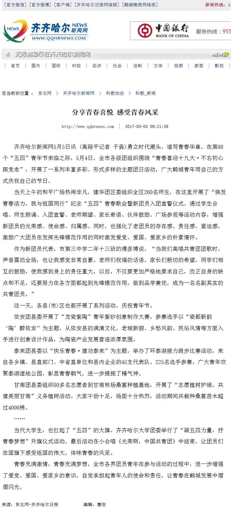 【齐齐哈尔日报】分享青春喜悦 感受青春风采