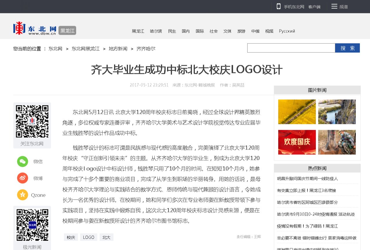 【东北网】齐大毕业生成功中标北大校庆LOGO设计