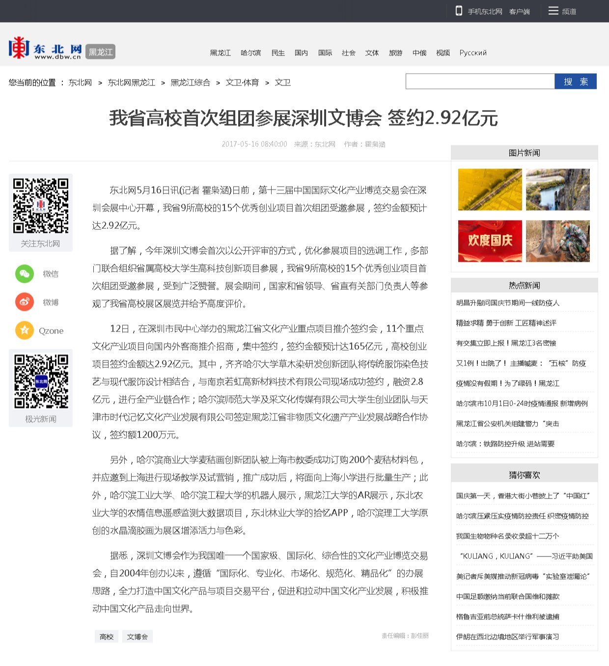 【东北网】我省高校首次组团参展深圳文博会 签约2.92亿元