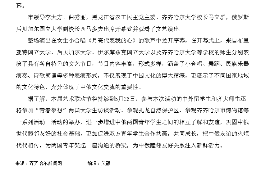 【齐齐哈尔新闻网】齐齐哈尔大学第八届中俄大学生艺术联欢节开幕