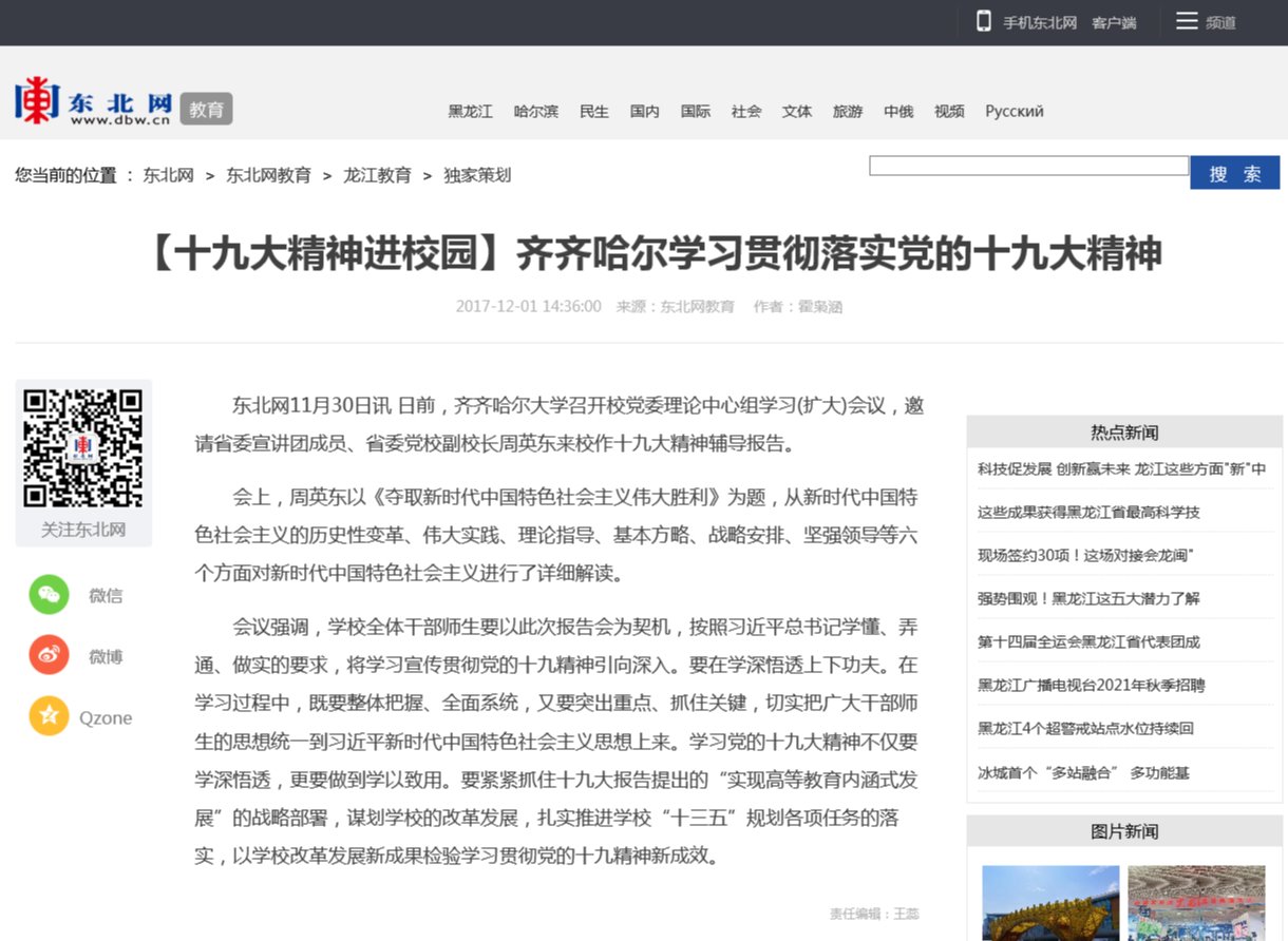 【东北网】齐齐哈尔学习贯彻落实党的十九大精神