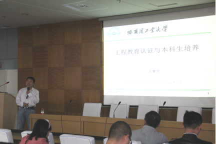 随后,王宽全教授作了《我国工程教育认证与本科生培养》主题报告。王教授分别从什么是工程教育认证、什么是华盛顿协议、我国工程教育认证的发展状况、工程教育认证的核心理念、我国工程教育认证通用标准以及复杂工程问题等六个方面为在场师生全面解读了我国工程教育认证及培养的相关知识。我院全体教师及部分学生代表、材料科学与工程学院、通信与电子工程学院、化学与化学工程学院首批准备申请认证专业的教师及领导参加了报告会。