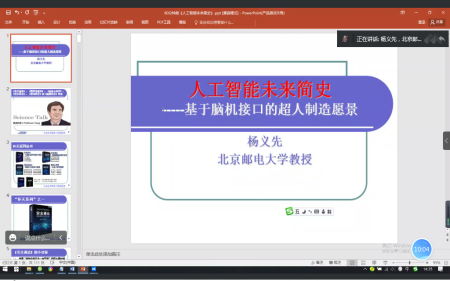 本次讲座,杨教授主要介绍人工智能分型、脑机接口简介、脑机接口恐怖开端与启示、宏观型脑机接口和中观型脑机接口等内容,杨教授以严谨的科学态度,基于神经生物学、脑科学、微电子学和虚拟现实等领域的成就,向人类展示一幅更玄幻的内涵型人工智能愿景,拓宽了师生们对人工智能的研究的思路,为进一步做好科研和学科工作打下坚实基础。