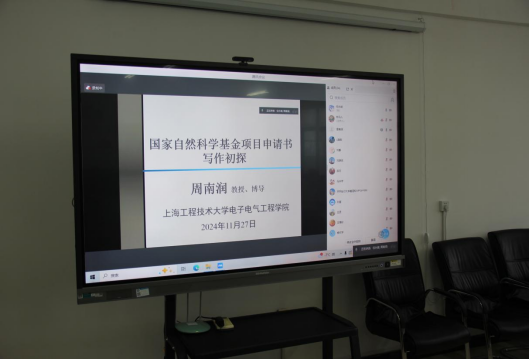 2024年11月27日,我院邀请到上海工程技术大学二级教授、博士生导师周南润教授采用线上线下相结合方式为我院教师做了题为《国家自然科学基金申请书撰写》专题讲座,学院院长张剑飞,副院长于晓敏、李敬有、朱磊,部分教师和研究生在博才楼525会议室参加了此次讲座,讲座由朱磊主持。