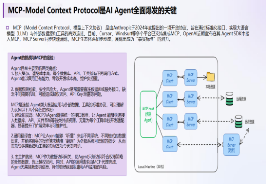 廉佐政教授深度解析AI技术如何重塑人机协作新范式。讲座从大模型的“前世今生”切入,梳理其发展历程与核心原理;聚焦“AI Agent”技术演进,探讨Agent的框架设计与应用,揭示AI从认知到行动的跨越,围绕“AI赋能”主题,剖析AI智能编程工具(如Cursor、通义灵码等)如何降低开发门槛,提高开发效率;AI+全面赋能,以及多模态内容生成,展现AI赋能应用;立足通用人工智能(AGI)未来图景,探讨人机共生时代的机遇与挑战。