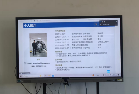 2025年10月24日,我院邀请浙大城市学院计算机与计算科学学院王军博士采用线上线下相结合方式带来题为《AI+医学+文化:跨学科研究与项目申报经验分享》的精彩讲座,学院院长张剑飞,副院长李敬有、副院长朱磊,部分教师和研究生在博才楼525会议室参加了此次讲座,讲座由朱磊主持。