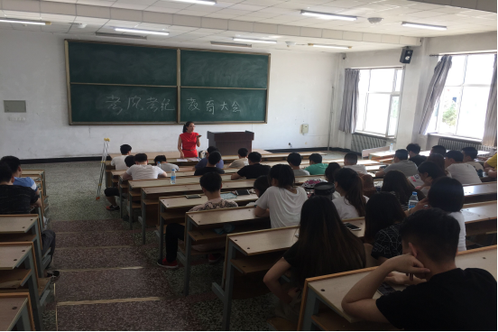 大会上,靳烨向大家传达了学校关于抓好考风考纪工作的相关精神,强调了诚信不是一次考试,是一生的考试,更是一个大学生的基本品质;诚实守信是每个合格大学生应该具有的品德。