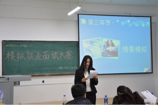 大学毕业生"就业难"问题越来越凸显,提高毕业生求职成功率是高校必须重视的问题。面试是大学毕业生求职就业必要经历,是决定求职能否成功的关键环节。为此,我院于2017年12月6日下午14:00在西主217室开展了以“驰骋青春职场,圆梦精彩人生”为主题的模拟面试大赛,为学生提供实战练兵的舞台。我院辅导员靳烨、姜艳丽作为嘉宾与学生们共同观看了本次大赛。