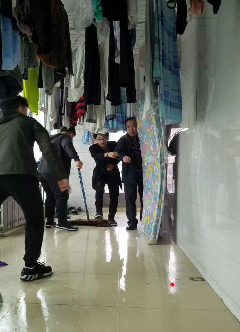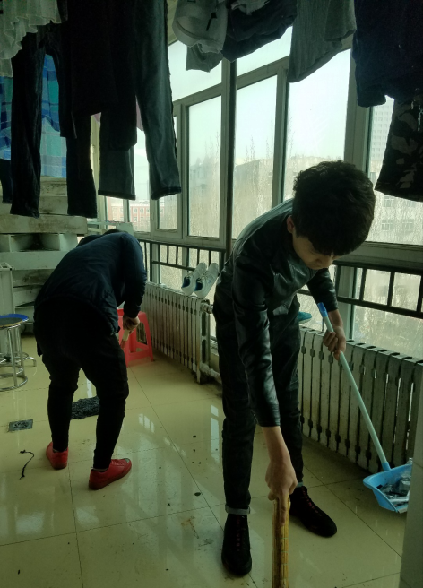 张春华在检查过程中发现,19号楼晾衣间等公共区域不同程度存在着脏乱差等问题。面对卫生死角,他与学生干部一起进行了清扫。