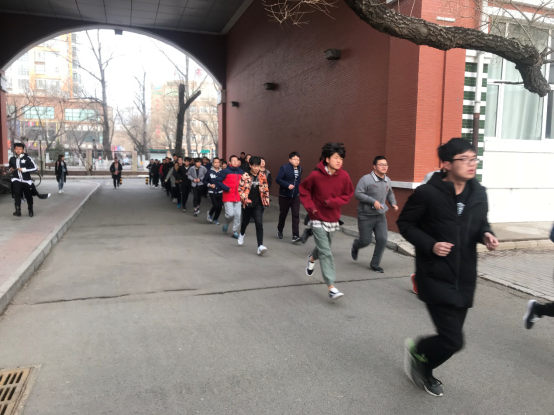 6点30分,天已放亮,此时我院大一学生已经在二号楼下集合完毕,在我院学生会自律部学生干部的组织和带领下,伴着清风,他们开始了围绕校园的晨跑活动。