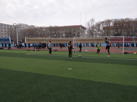 6点40分,在体育场场地正中,我院足球运动员已经开始了紧锣密鼓的训练,球员脚下虎虎生风,抢夺异常激烈,不断赢得场内观众的喝彩。