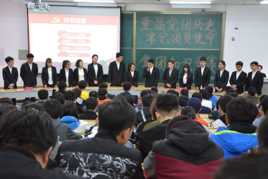 为强化思想引领、充分发挥团员青年在学校思想政治工作中的生力军作用,加强学生对党团知识的了解,引导其树立崇高的共产主义理想,我院于4月11日下午14:40在西区阶教203举行以“重温党团历史,牢记团员使命”为主题的党团知识竞赛,我院团员青年积极参与此次知识竞赛。