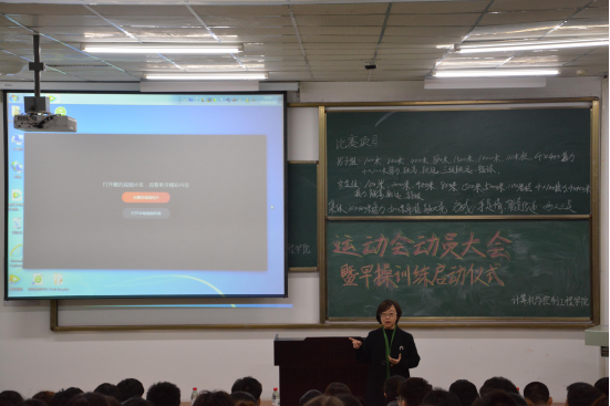 为了积极迎战我校春季运动会,充分调动运动员积极性,提升学生的身体素质,进一步实现三走计划,我院于2018年4月10日晚18:00在西主阶教203召开了运动会动员大会暨早操训练启动仪式。我院学生办主任张英琦主持会议。