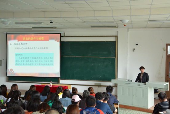 杨丽在讲座中详细地为入党积极分子讲解入党所需要满足严格的条件,年满十八岁的中国工人、农民、军人、知识分子和其他社会阶层的先进分子,承认党的纲领和章程,愿意参加党的一个组织并在其中积极工作、执行党的决议和按期交纳党费的,可以申请加入中国共产党。入党需要从自然人依次经历入党申请人、入党积极分子、党员发展对象、预备党员五个阶段,需要经历党组织对入党动机、党政觉悟、思想品质等的考察。