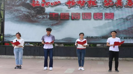 为活跃校园文化氛围,丰富大学生课余文化活动,在第二十届大学生校园文化艺术节期间,我院于2018年5月20日上午在我校东区三致广场举行了以"铭初心,畅梦想,筑青春"为主题的诗词表演赛。