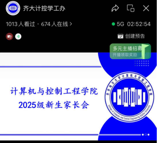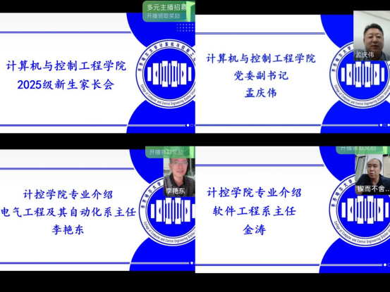 为增强家校联动,凝聚育人合力,帮助2025级新生和家长全面了解学院发展概况、专业建设与学生培养体系,8月28日晚,我院通过微信公众号平台组织召开了2025级新生家长会暨线上交流直播。直播由辅导员郭宇欣主持,院领导、各系主任和新生辅导员共同完成,围绕学院整体情况、专业学科介绍和新生入学建议三大板块展开讲解。此次直播吸引超千余名新生及家长在线观看,氛围热烈。