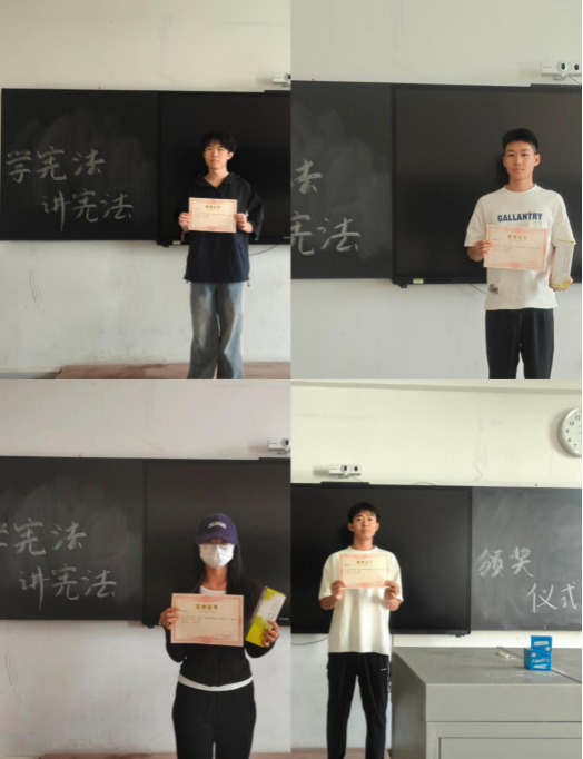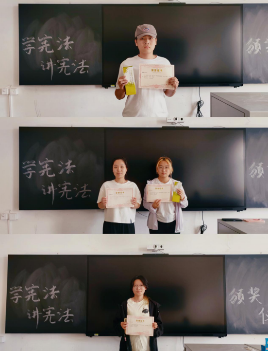 在颁奖仪式现场,学院相关负责人为获奖同学逐一颁发奖状与奖品,并向他们表示祝贺。同时指出,期望同学们以此次竞赛为契机,持续深入研习宪法及法律知识,强化法治意识,争做尊法、学法、守法、用法的新时代青年。