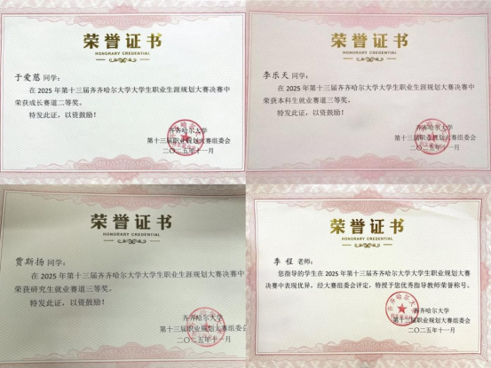 此次大赛成绩的取得,充分体现我院在学生培养方面的工作成果。学院始终坚持“以生为本”的育人理念,将职业规划教育贯穿人才培养全过程,常态化组织学生参与各类职业规划赛事,有效提升学生的职业规划意识和就业竞争力。学院将继续深化职业发展教育工作,创新指导模式,助力学生实现更高质量就业,为培养德智体美劳全面发展的优秀人才贡献力量。